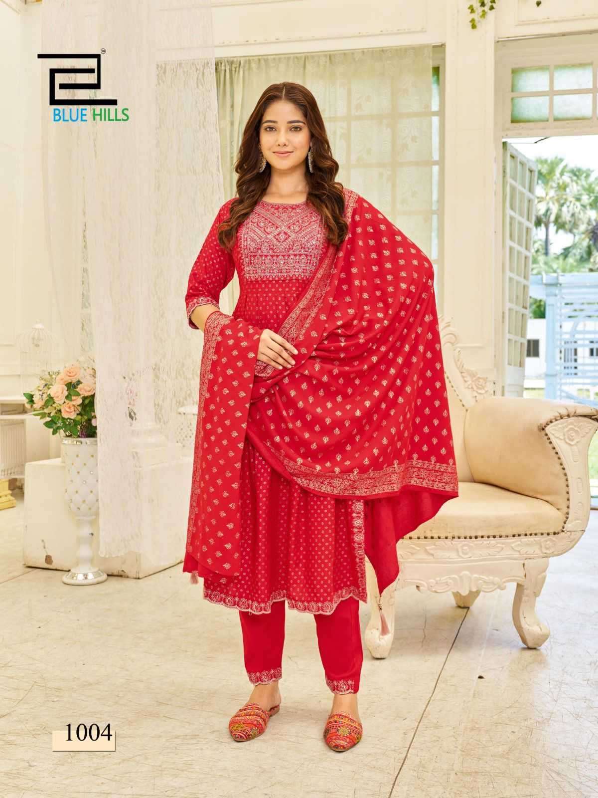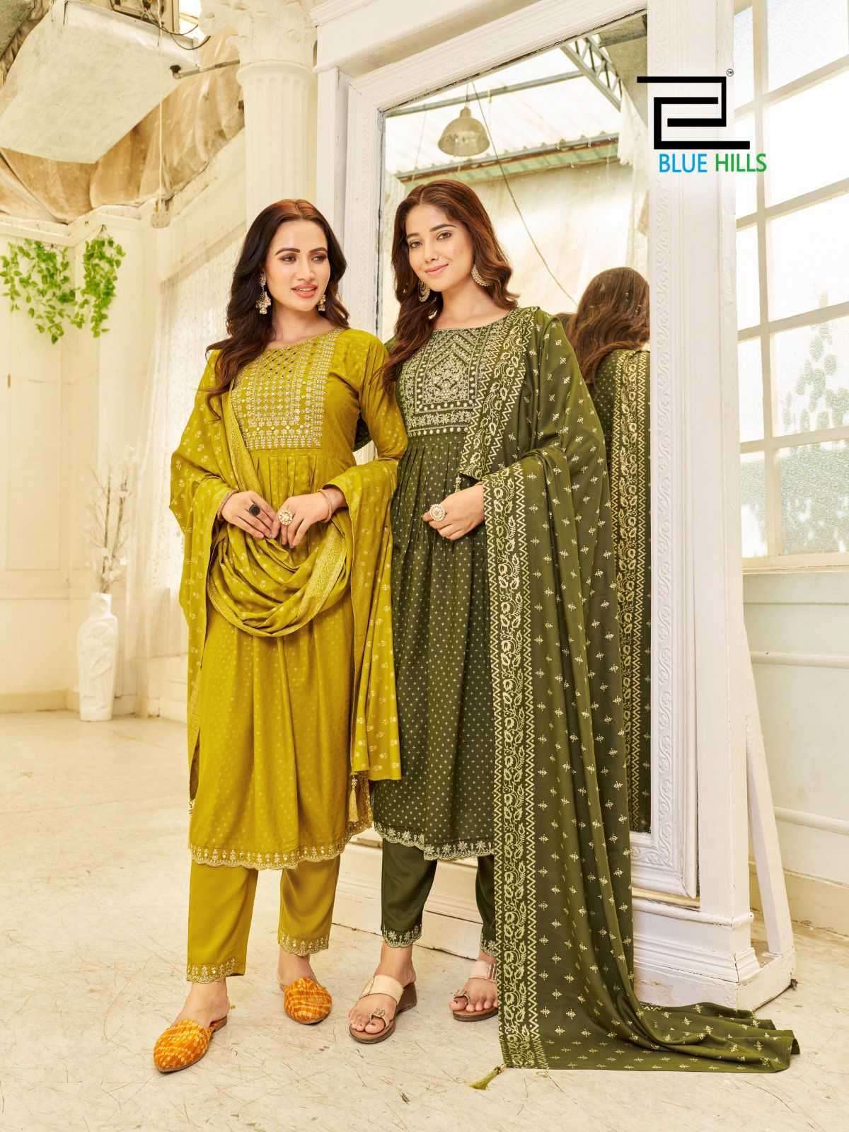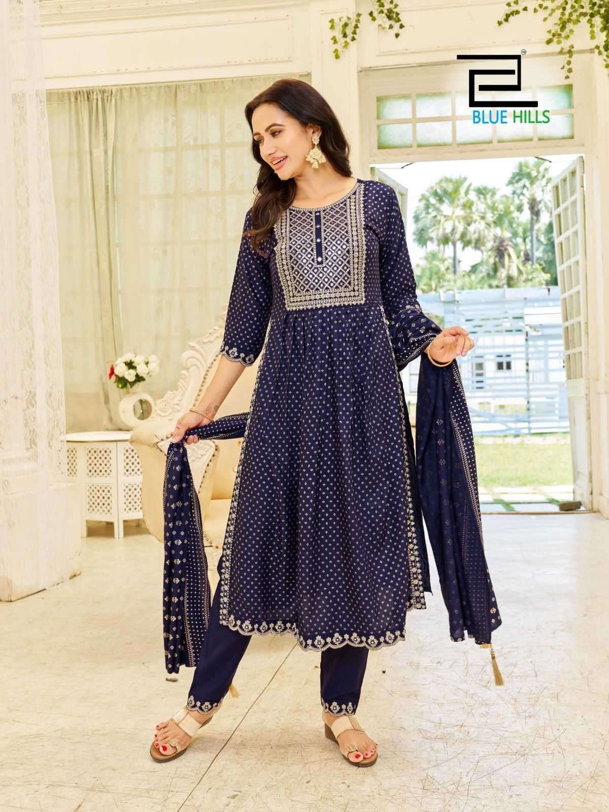 Buy Online Blue Hills Trend Capture Readymade Fancy Nayra Cut Kurti with Dupatta and Bottom 5 Pcs of Full Catalogue at Wholesale Price. Looking for Blue Hills Trend Capture Readymade Fancy Nayra Cut Kurti with Dupatta and Bottom Full Catalouge at Best Price? Buy Now Blue Hills Trend Capture Readymade Fancy Nayra Cut Kurti with Dupatta and Bottom at Wholesale Rate of Rs 4975 with Total 5 Pcs from authroized dealer and supplier of BLUE HILLS Brand. Cost of Each piece is just only Rs 995 which is very low and affordable price to resale the product in your retail store ,This is Surat based Wholesale Supplier & Dealer of BLUE HILLS Brand. Click on Brand name to Know more about BLUE HILLS Brand's products.Call or Whatsapp on +91-6354092952 for booking or enquiry