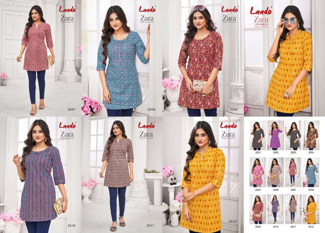 Buy Online Laado Zara Vol 2 Cotton Printed Short Tops Collection 12 Pcs of Full Catalogue at Wholesale Price. Looking for Laado Zara Vol 2 Cotton Printed Short Tops Collection Full Catalouge at Best Price? Buy Now Laado Zara Vol 2 Cotton Printed Short Tops Collection at Wholesale Rate of Rs 2400 with Total 12 Pcs from authroized dealer and supplier of LAADO Brand. Cost of Each piece is just only Rs 200 which is very low and affordable price to resale the product in your retail store ,This is Surat based Wholesale Supplier & Dealer of LAADO Brand. Click on Brand name to Know more about LAADO Brand's products.Call or Whatsapp on +91-6354092952 for booking or enquiry