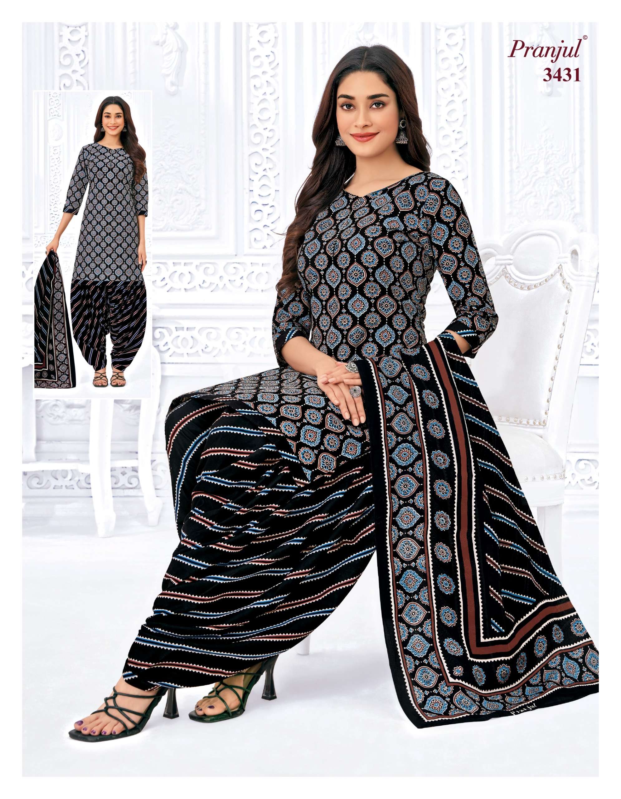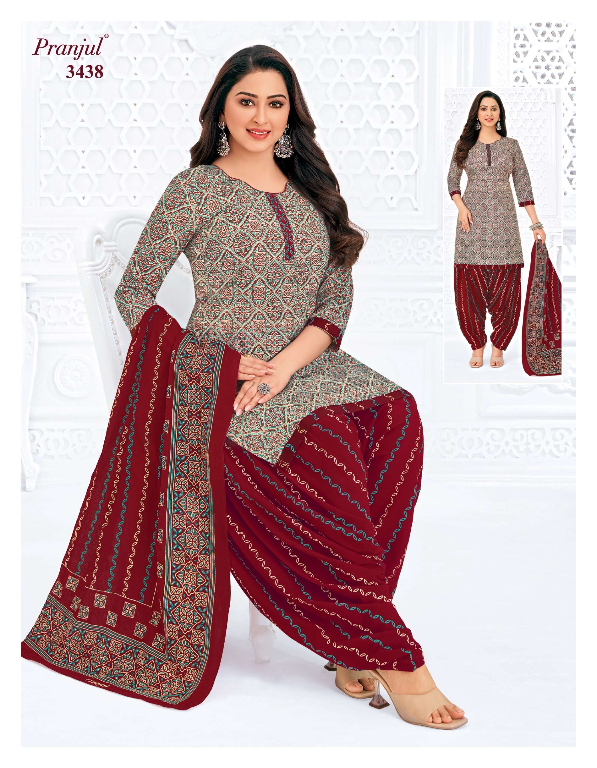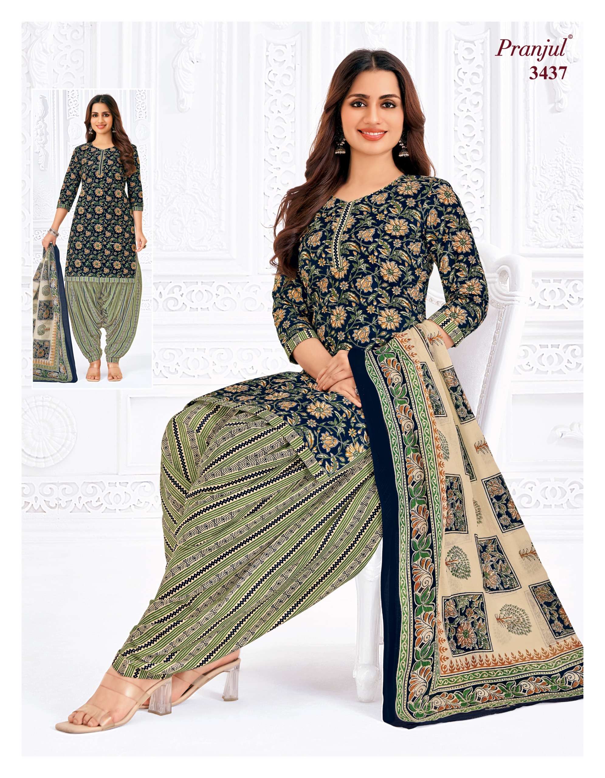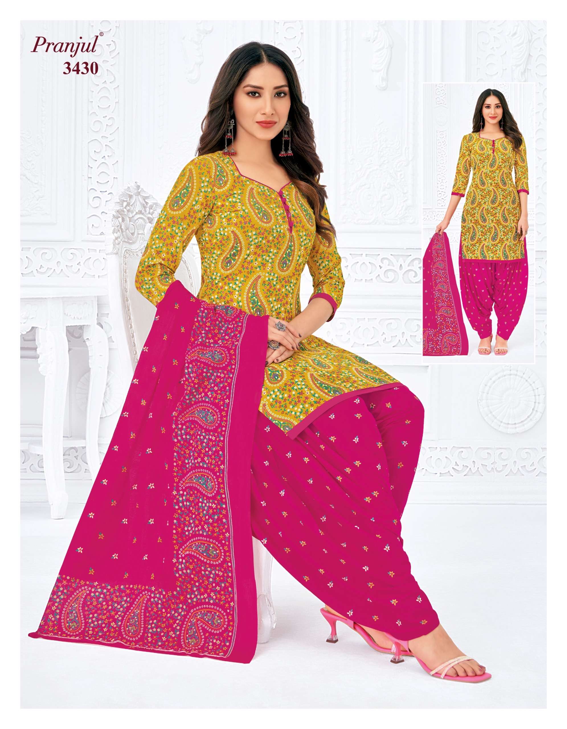 Buy Online Pranjul Priyanshi Vol 34 Pure Cotton Dress Material at Wholesale Price 36 Pcs of Full Catalogue at Wholesale Price. Looking for Pranjul Priyanshi Vol 34 Pure Cotton Dress Material at Wholesale Price Full Catalouge at Best Price? Buy Now Pranjul Priyanshi Vol 34 Pure Cotton Dress Material at Wholesale Price at Wholesale Rate of Rs 16560 with Total 36 Pcs from authroized dealer and supplier of PRANJUL Brand. Cost of Each piece is just only Rs 460 which is very low and affordable price to resale the product in your retail store ,This is Surat based Wholesale Supplier & Dealer of PRANJUL Brand. Click on Brand name to Know more about PRANJUL Brand's products.Call or Whatsapp on +91-6354092952 for booking or enquiry